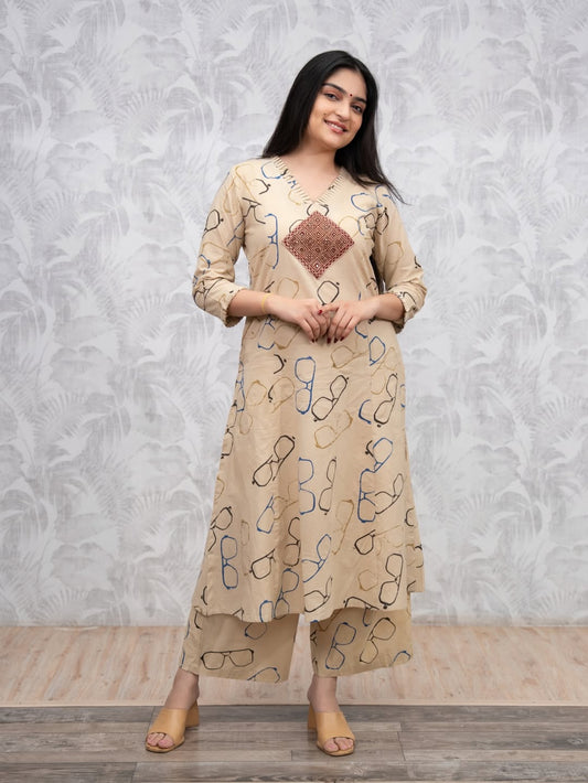 save 57%Printed Cotton Kurta Palazzo Set