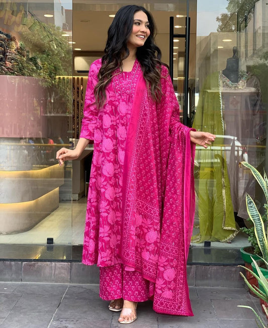 Pure Cotton Anarkali Set with Embroidery