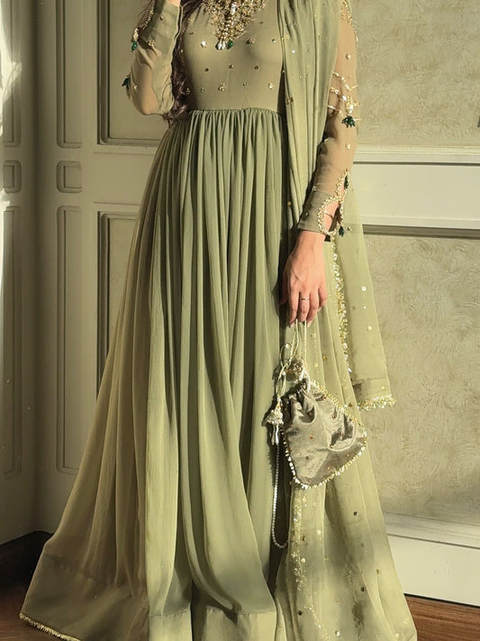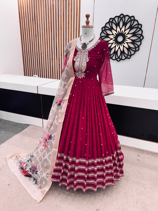 Heavy Embroidery Sequence Work Gown with Silk Dupatta