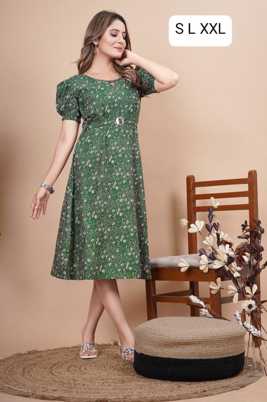 save 47%Green Printed Rayon Midi Dress