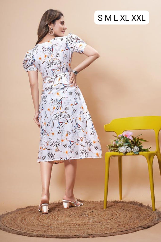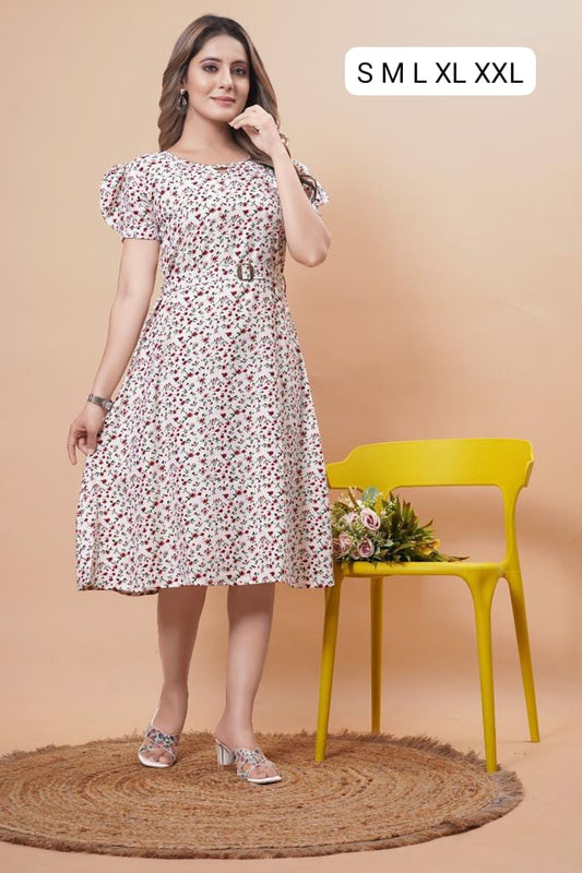 save 47%White Printed Rayon Dress