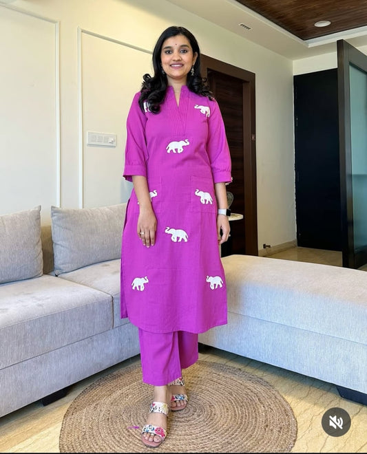 Pink Cotton Flex Kurta Set with Khadi Silk Dupatta