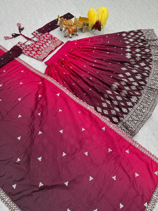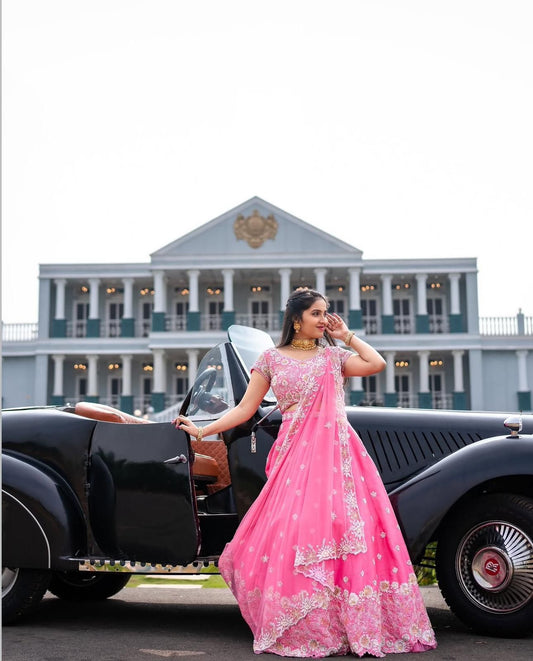 Pink Chinon Heavy Embroidery work Lehenga with Choli & Dupatta