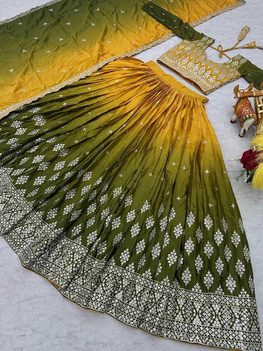 Yellow Colored Dyeable Pure Viscose Jacquard fabric Lehenga & Choli with Dupatta Set