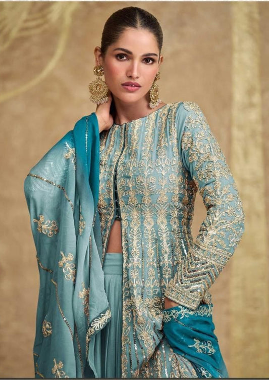 Premium Embroidered Georgette Top and Skirt with Dupatta