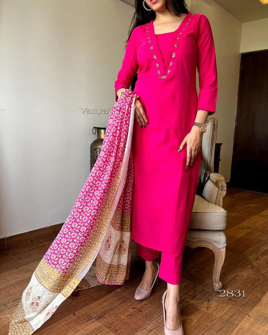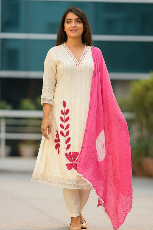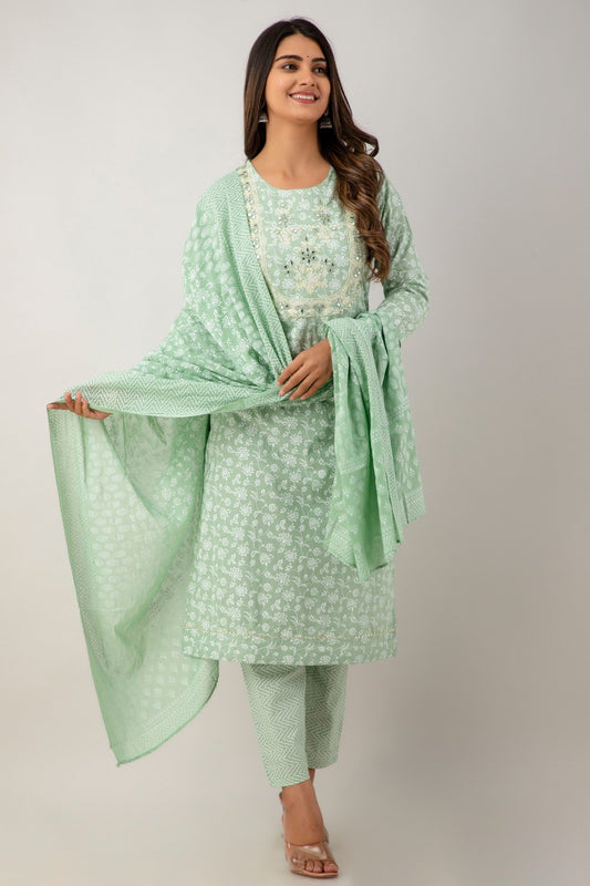 Graceful Cotton Kurti Pant Dupatta Set