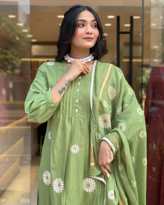 Premium Muslin Cotton Kurta Set with chiffon Dupatta