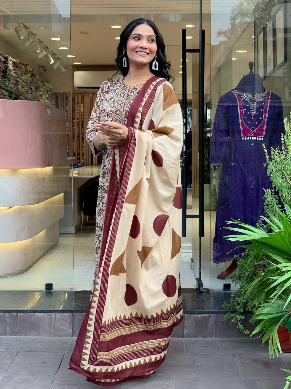 Upgrade your ethnic wardrobe with this beautifully crafted Magic Cotton Anarkali Style Suit Set, designed for elegance, comfort, and everyday charm.