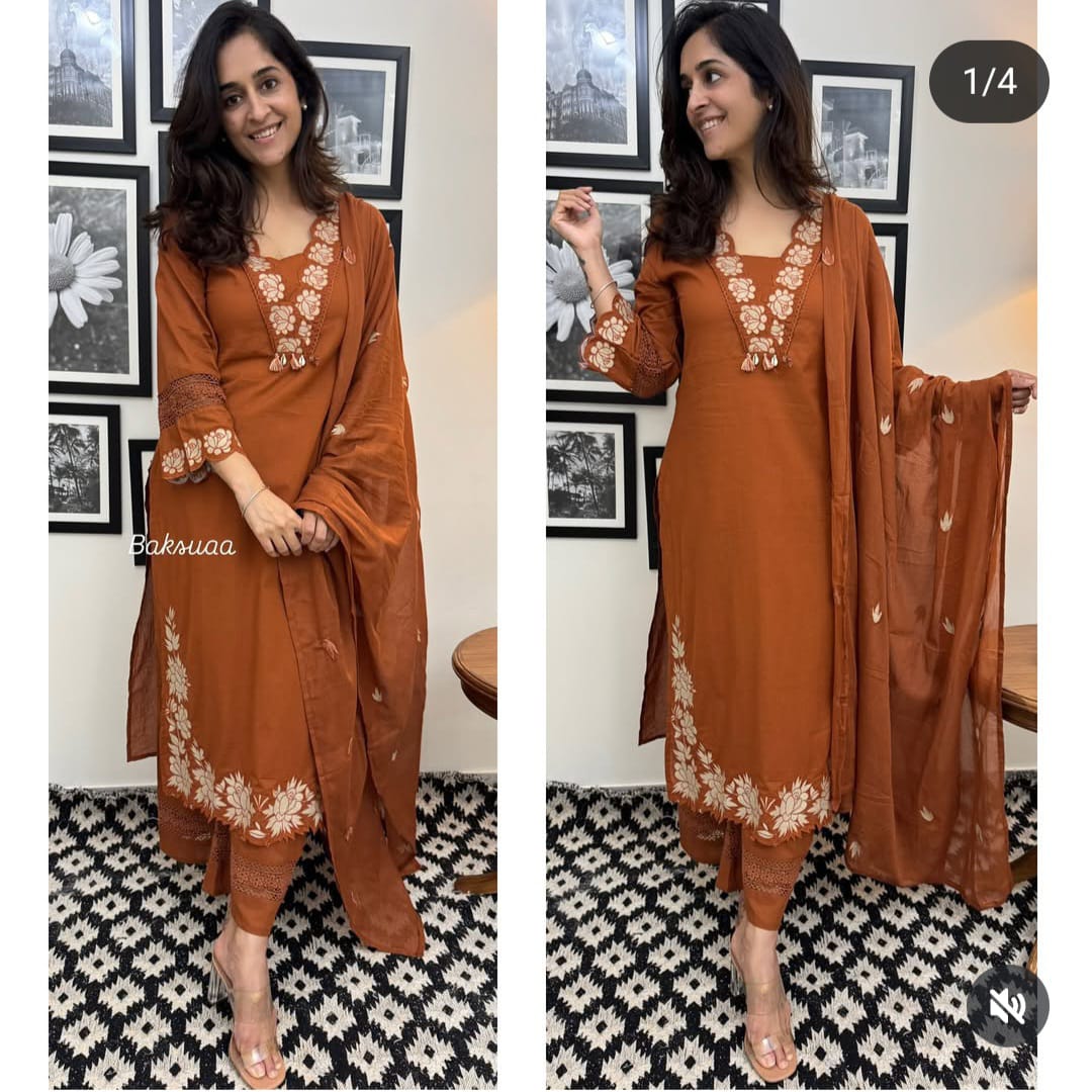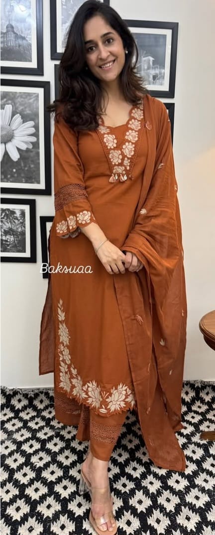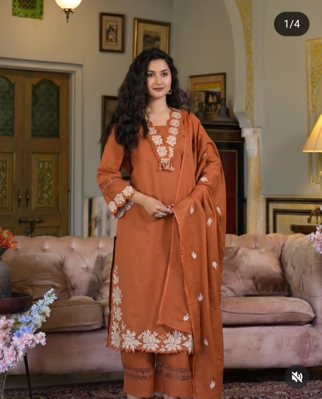 Upgrade your wardrobe with this exclusive and comfortable designer suit set, crafted in breathable cotton fabric and styled with elegant detailing. Perfect for both festive occasions and casual elegance. ๐ธ