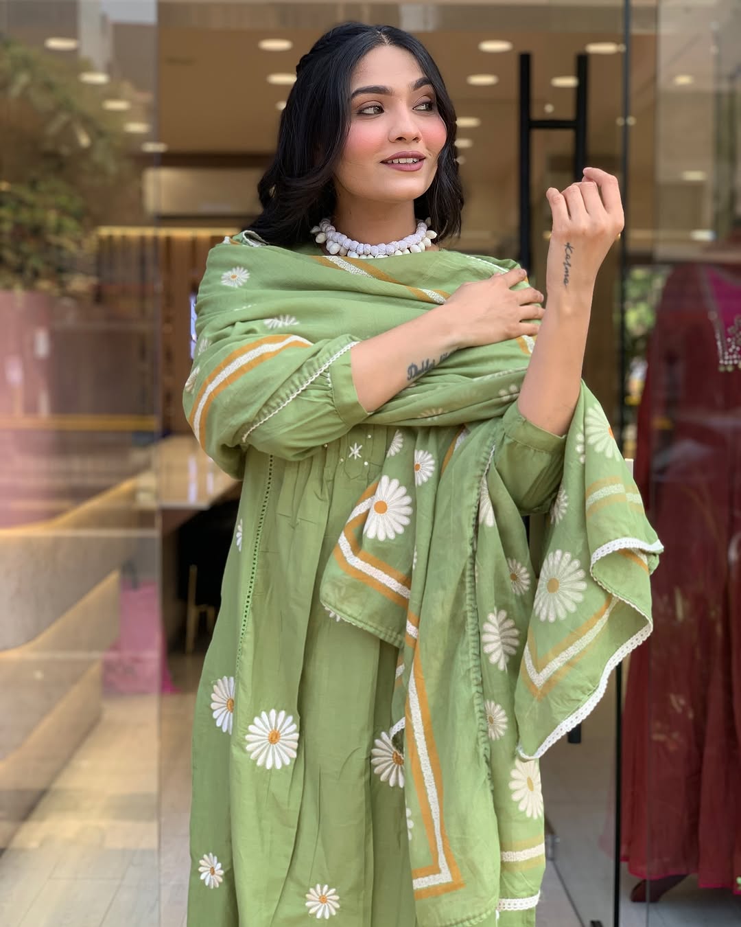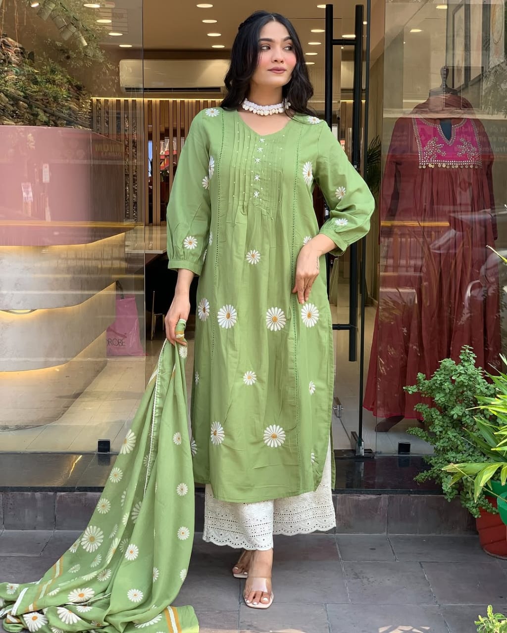 ✨ Bottom: Elegant embroidered plazzo with beautiful schiffli detailing