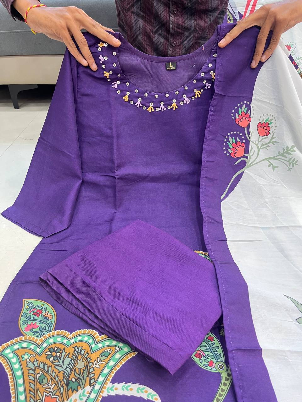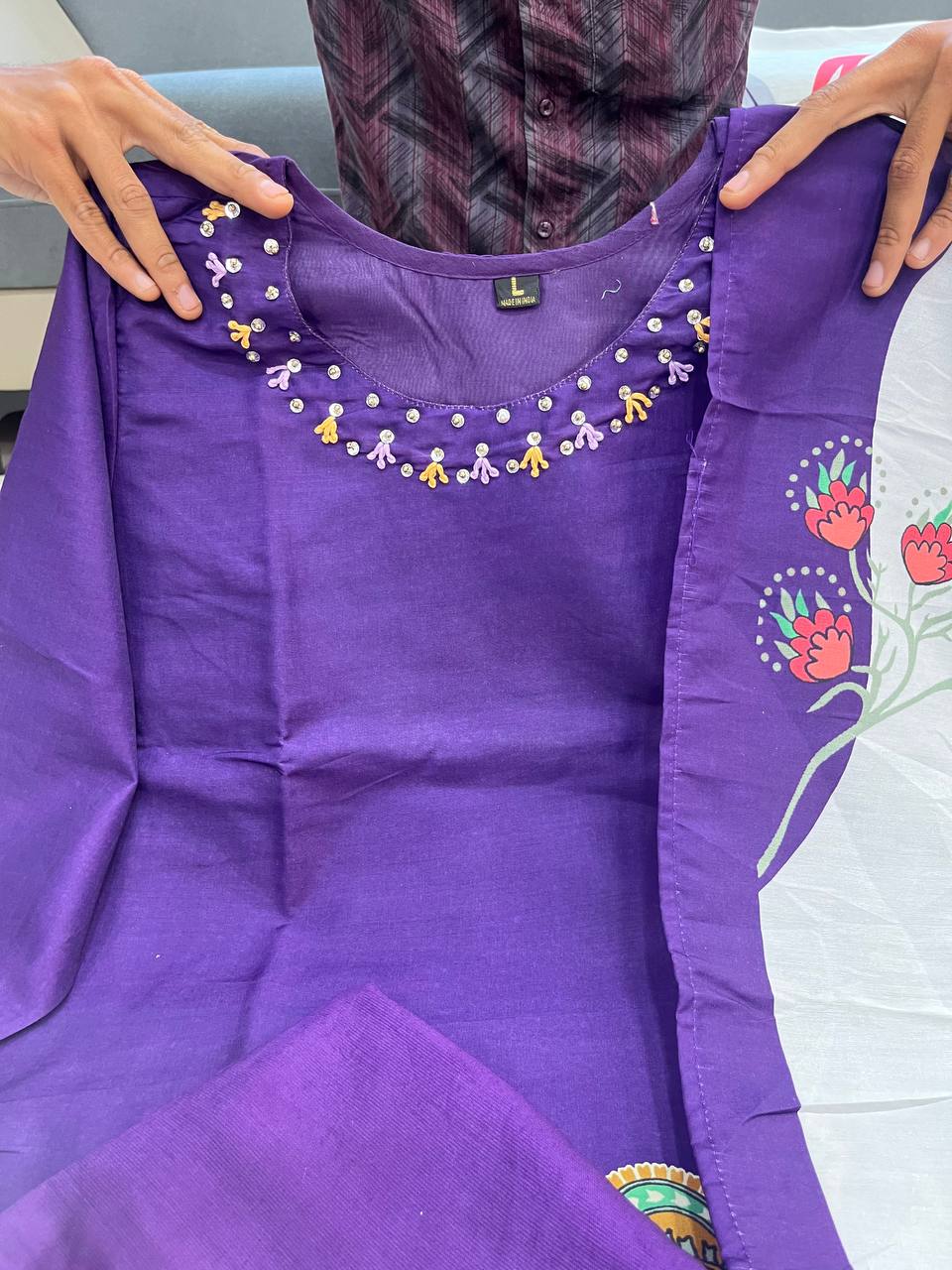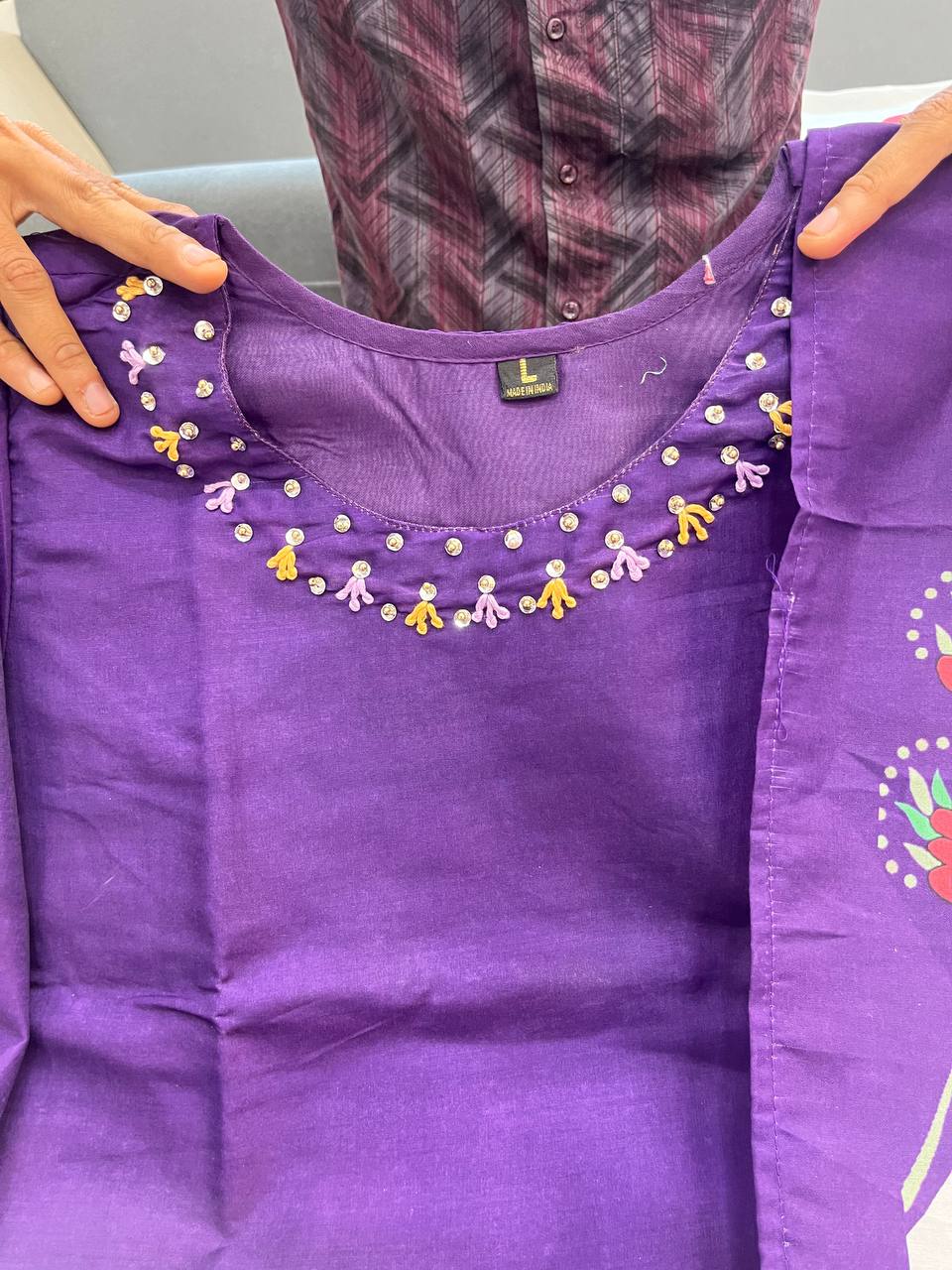 The kurta showcases intricate digital floral prints enhanced with detailed hand and neckline embroidery, adding depth and sophistication. Designed with a comfortable lining, it ensures a perfect fit and polished finish.