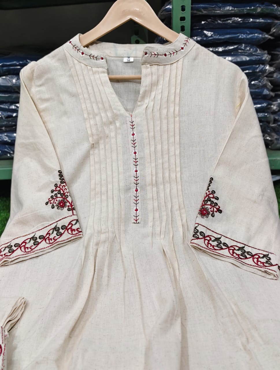 This elegant outfit features delicate thread embroidery and refined Pintex detailing on the collar, adding a touch of sophistication to everyday wear. Paired with a matching pant, it's perfect for casual outings, office wear, or light festive moments—bringing together comfort, craftsmanship, and understated charm.