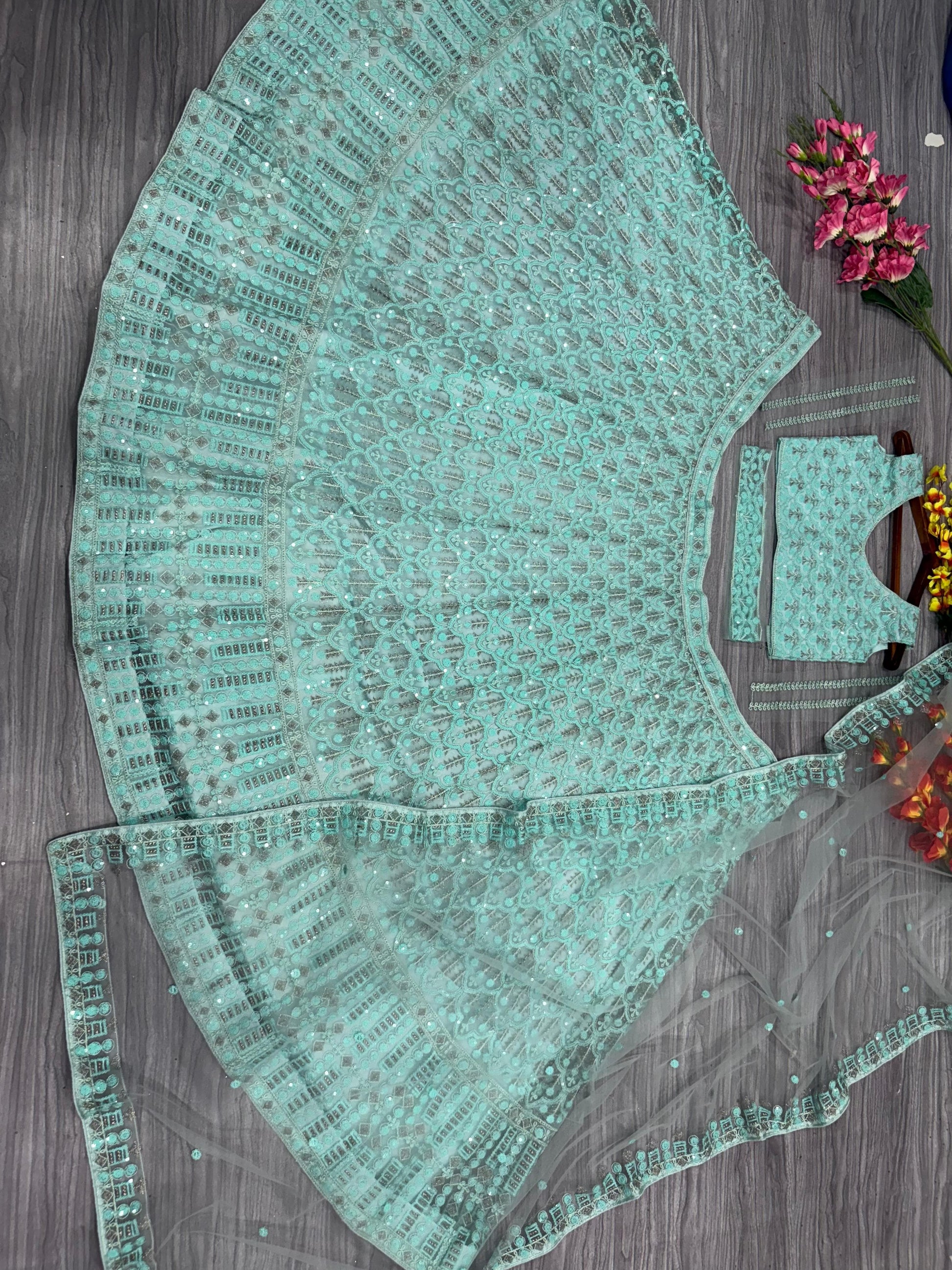 Premium Net with Heavy Embroidery & Coding work Lehenga Choli Set
