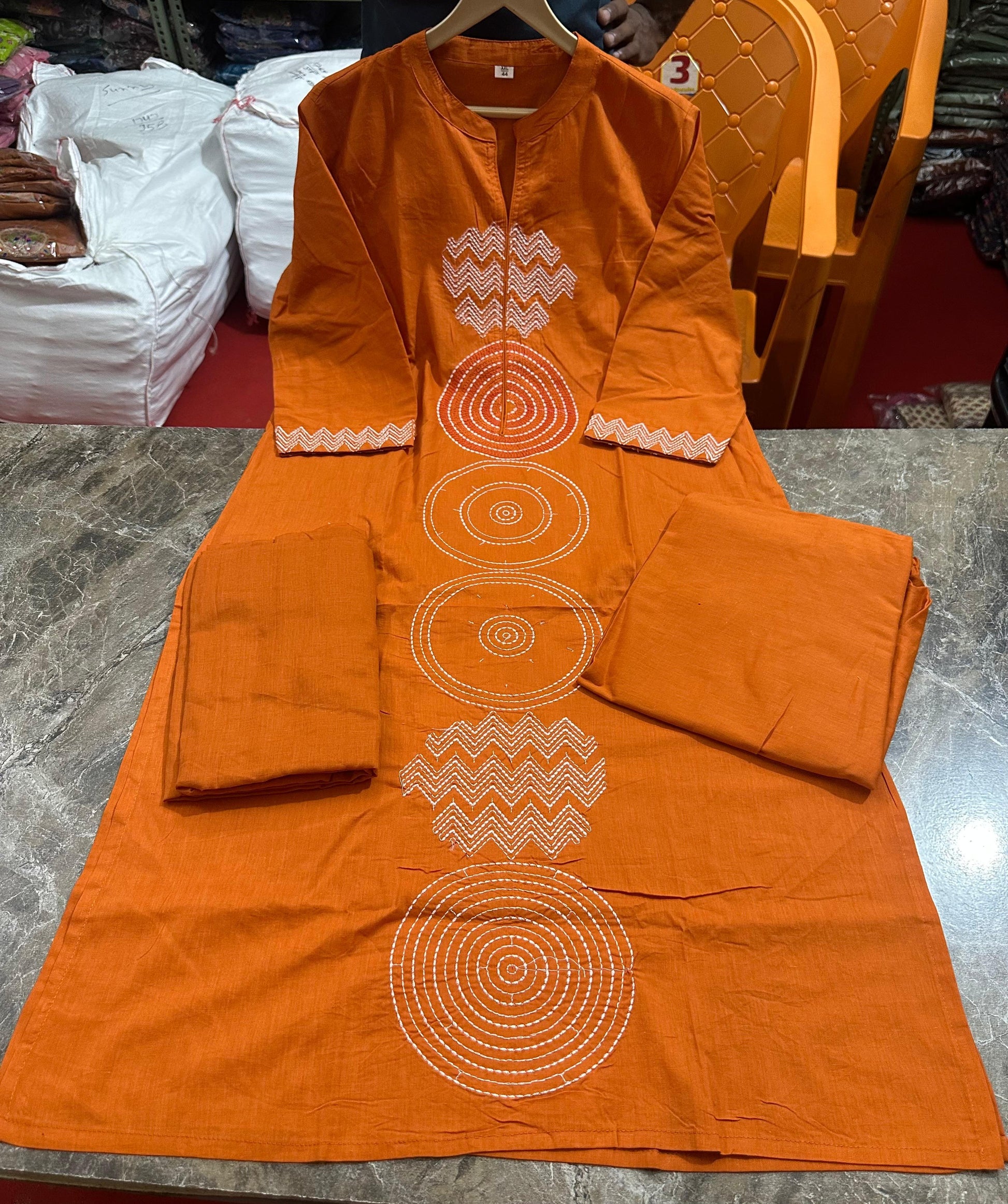 Intricate detailing on the yoke and heavy handwork with original embroidery add a touch of traditional artistry, while the soft Cotton 60×60 fabric ensures comfort all day long.