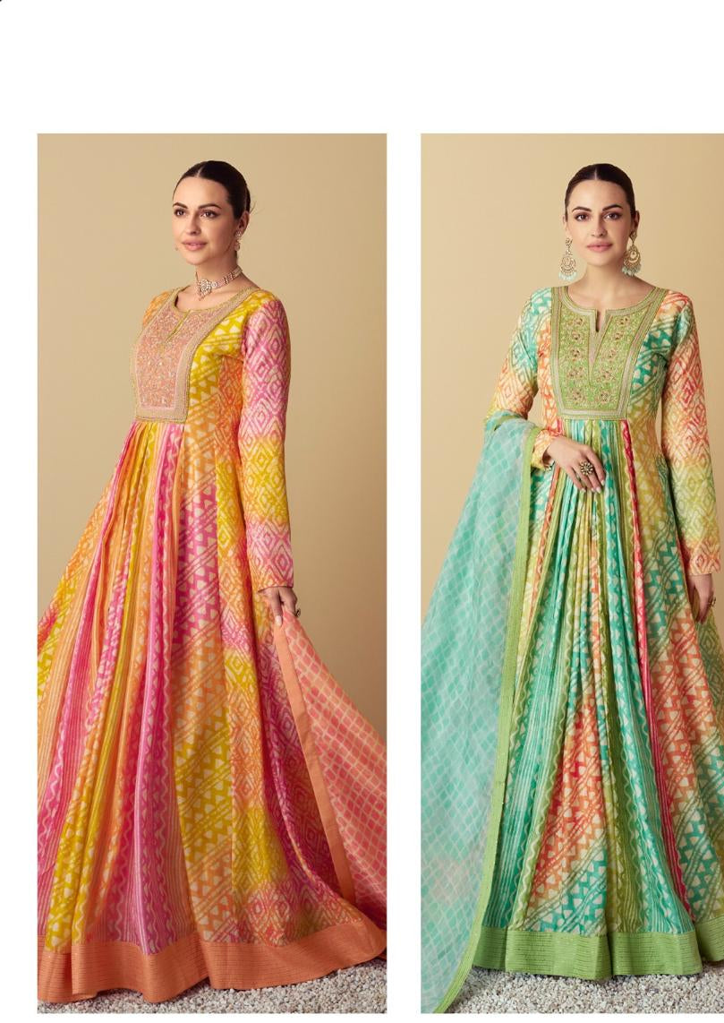 This real muslin digital print gown is a celebration of both tradition and innovation. It offers a unique blend of timeless elegance and contemporary style, making it a truly special and unforgettable piece.